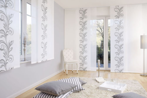 Flächenvorhänge lieben den großen Auftritt. Egal ob große Fenster in der modernen Wohnung, im Büro und im Geschäft werden Flächenvorhänge zum echten Hingucker. Mit transparenten, lichtdurchlässigen oder blickdichten Stoffen können durch bloßes Verschieben oder Überlagern der Stoffbahnen interessante Lichteffekte mit reizvollen Durchblicken erzielt werden.